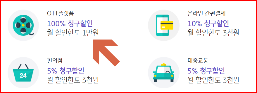 ② 최대 1만 원까지 OTT 플랫폼 요금을 할인받을 수 있다! (신용카드 중 최대 할인)
