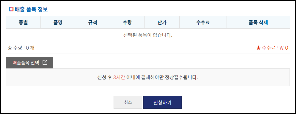 ④ 배출품목이 선택되었습니다. 이제 '신청하기'를 클릭해 주세요.