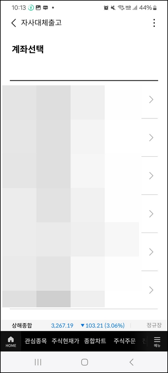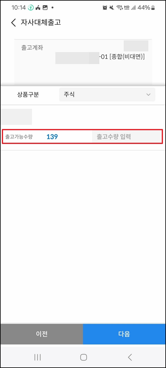 - 이체하고자 하는 주식이 있는 계좌 선택