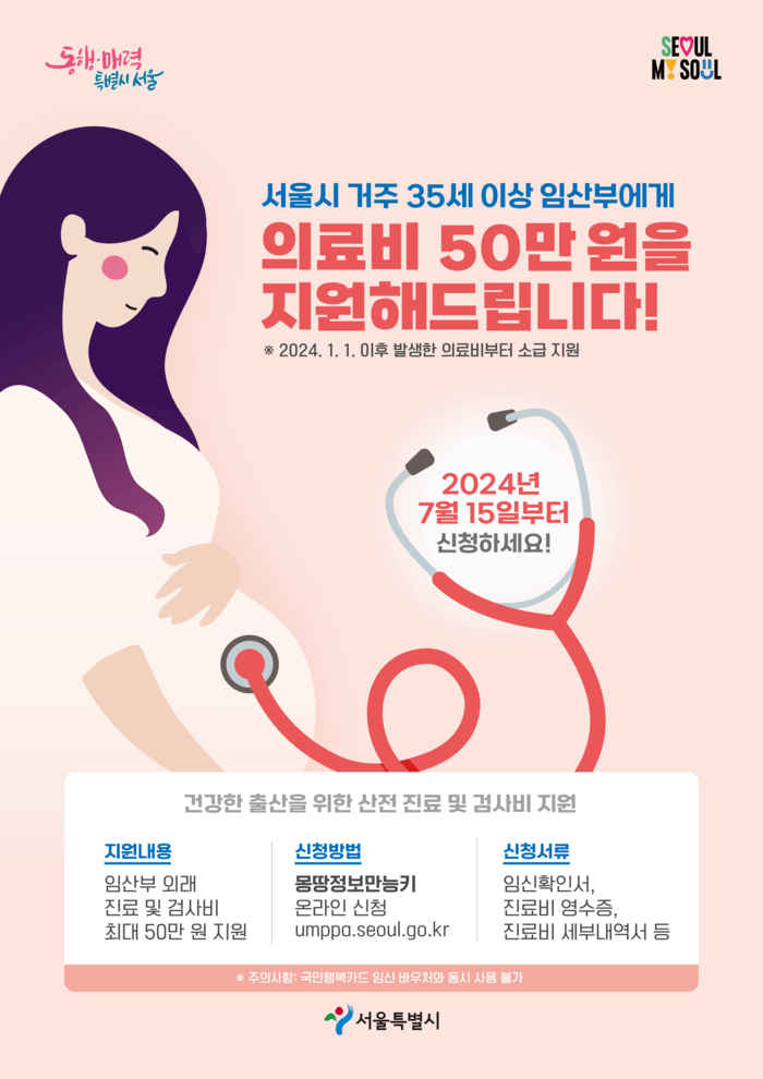 서울시에 거주하고 있는 35세 이상 임산부라면 50만 원의 지원금을 받아가실 수 있습니다. 신청방법 및 사용처를 알려드리니, 현재 임신 중이시고 35세 이상이라면 지금 바로 신청하시기 바랍니다.