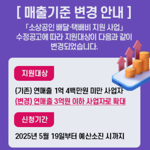 소상공인 배달택배비 지원대상 기준이 아래와 같이 확대되었습니다.