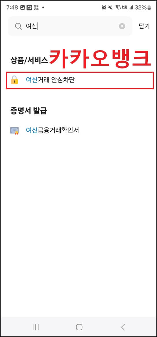 예를 들어, 카뱅, 케이뱅크, 토스 검색창에 [여신]이라고만 쳐도 아래와 같은 결과가 나타나는데요. 결과를 클릭하신 후, 안내대로 진행하시면 1분도 안 되어 금방 신청이 완료됩니다.