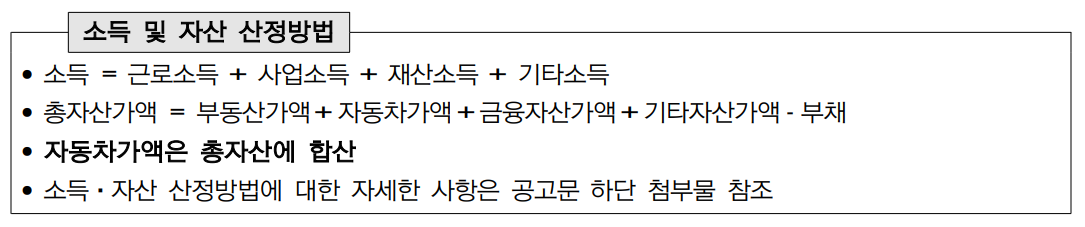 ✔ 소득 및 자산 산정방법