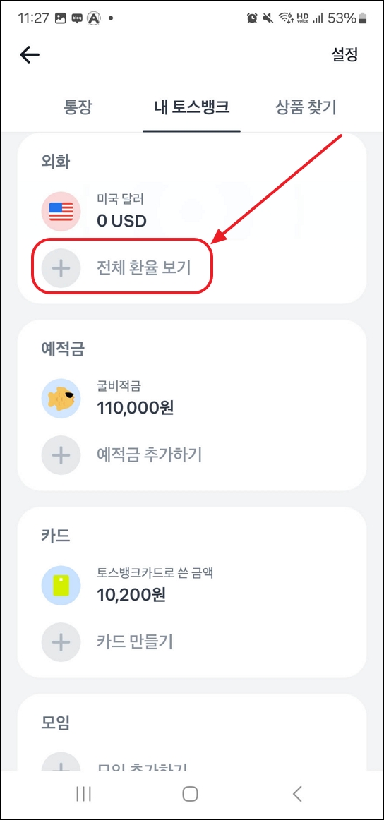 외화통장을 만드셨다면 이제 준비 끝입니다. 토스뱅크 통장에 환전을 원하는 금액만큼의 원화를 입금해 둡니다. 100만 원을 환전할 거라면 100만 원을 토스 통장에 입금해 두세요.