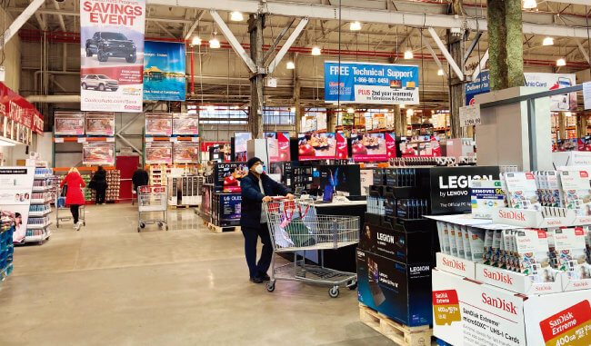 창고형 할인매장인 코스트코에서는 품질이 좋은 여러 가지 제품들이 진열되어 있습니다. 뿐만 아니라, 식료품, 과자, 가전제품, TV, 자동차 용품, 타이어, 완구, 하드웨어, 스포츠 용품, 보석, 시계, 카메라, 서적, 가정용품, 의류, 건강 및 미용용품, 가구, 사무용품 등 국내외 품질 높은 브랜드 제품들을 일반 도소매점에 비해 매우 저렴한 가격으로 구매할 수 있습니다.