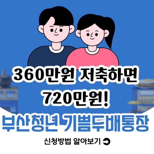 부산에 거주하고 있는 청년이라면 부산시가 지원하는 부산청년 기쁨두배통장에 주목해 보시기 바랍니다. 360만 원을 저축하면 시에서 동일한 금액인 360만원을 지원해 주는 정책인데요. 내가 납입한 금액의 두 배, 그에 더해 이자까지 야무지게 챙길 수 있는 만큼, 가입조건에 해당된다면 꼭 신청해 보시기 바랍니다.
