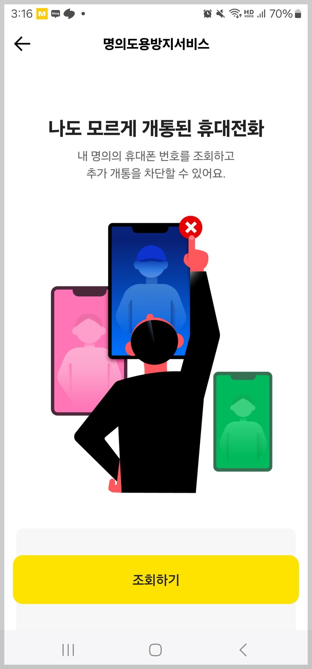 명의도용방지 서비스는 무료이며 Msafer 혹은 카카오뱅크에서도 가입할 수 있어요.